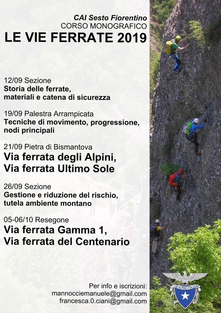 Tre serate tecnico-teoriche accompagnate da 3 uscite su ferrata di medio impegno.